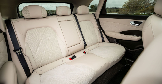 De MG S6 EV is een grote, volwassen auto. 4,7 meter lang. Binnenin valt meteen het plaatsaanbod op, zowel voor- als achterin. Ook de kofferruimte is ronduit royaal, met daarbovenop nog een frunk. Voor gezinnen of wie vaak met passagiers rijdt, scoort deze MG bijzonder sterk.