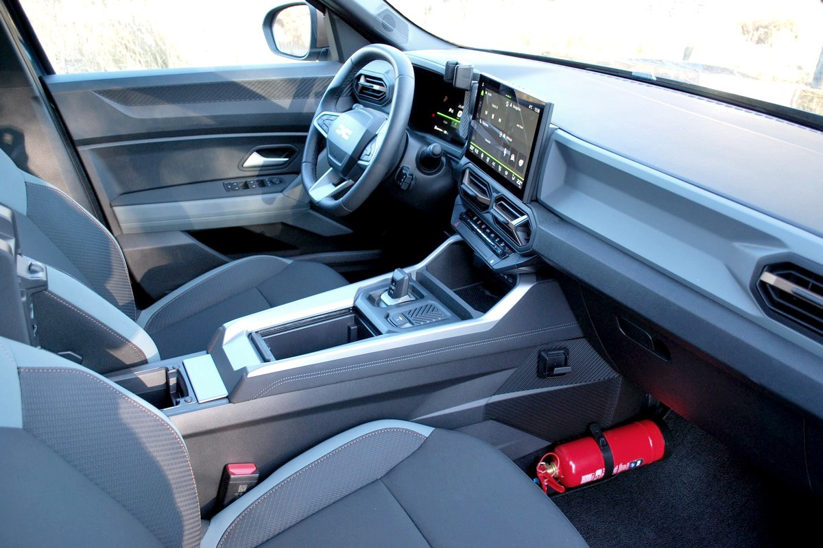 De Bigster oogt modern en robuust, met zijn kunststof beschermpanelen rondom. Binnenin blijft het eenvoudig, met veel harde plastics, maar de afwerking is degelijk en overzichtelijk. Belangrijke functies zoals klimaatregeling en waarschuwingslichten hebben nog fysieke knoppen, terwijl het 10-inch infotainmentsysteem logisch en gebruiksvriendelijk is opgebouwd. Het zitcomfort is goed, zowel voor- als achteraan. Achterin merk je duidelijk de extra ruimte ten opzichte van de Duster, met veel beenruimte en een verrassend bruikbare middenplaats.